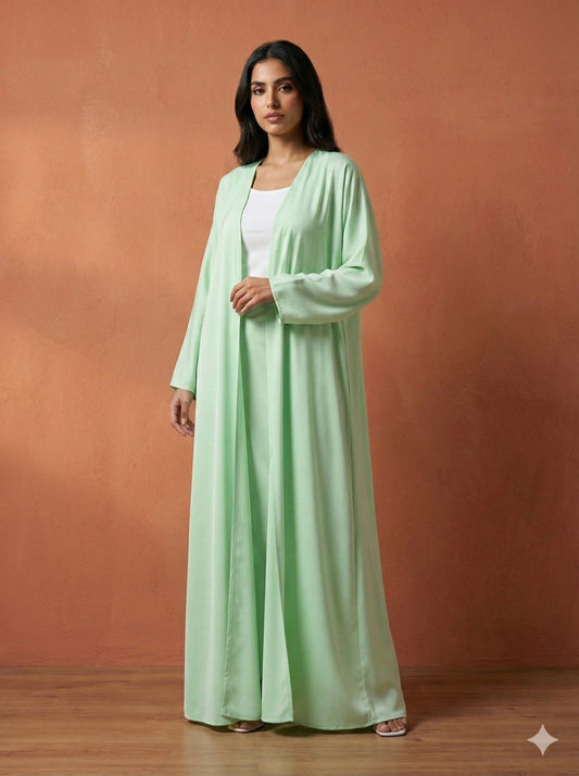 عباية ساتان خضراء سادة فاخرة