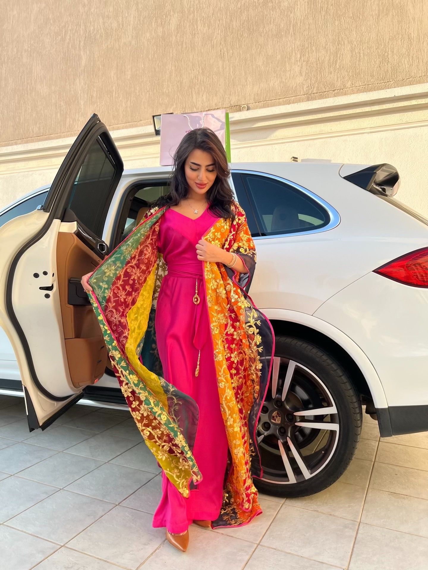 جلابية فاخرة تجمع بين الأناقة الشرقية واللمسة الفنية العصرية بتصميم ينبض بالألوان والحيوية، بتدرجات غنية بين الذهبي والأخضر والعنّابي والزهري مع تطريزات ذهبية لافتة؛ قطعة تمنحك حضوراً واثقاً وأنوثة راقية في كل مناسبة.