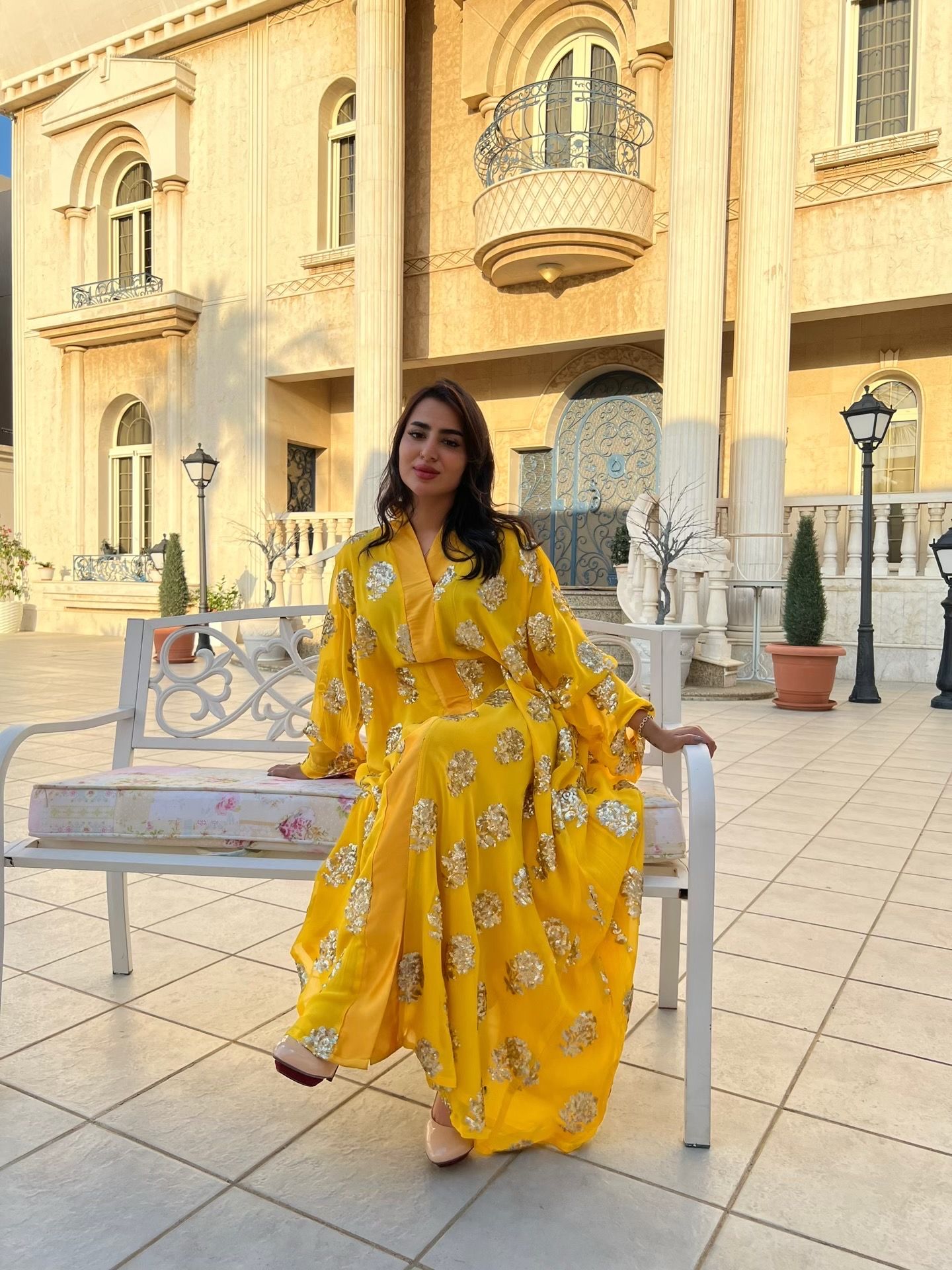- إشراقة لافتة: لون أصفر ذهبي مبهج يبرز جمال الإطلالة ويمنح حضورًا راقيًا.