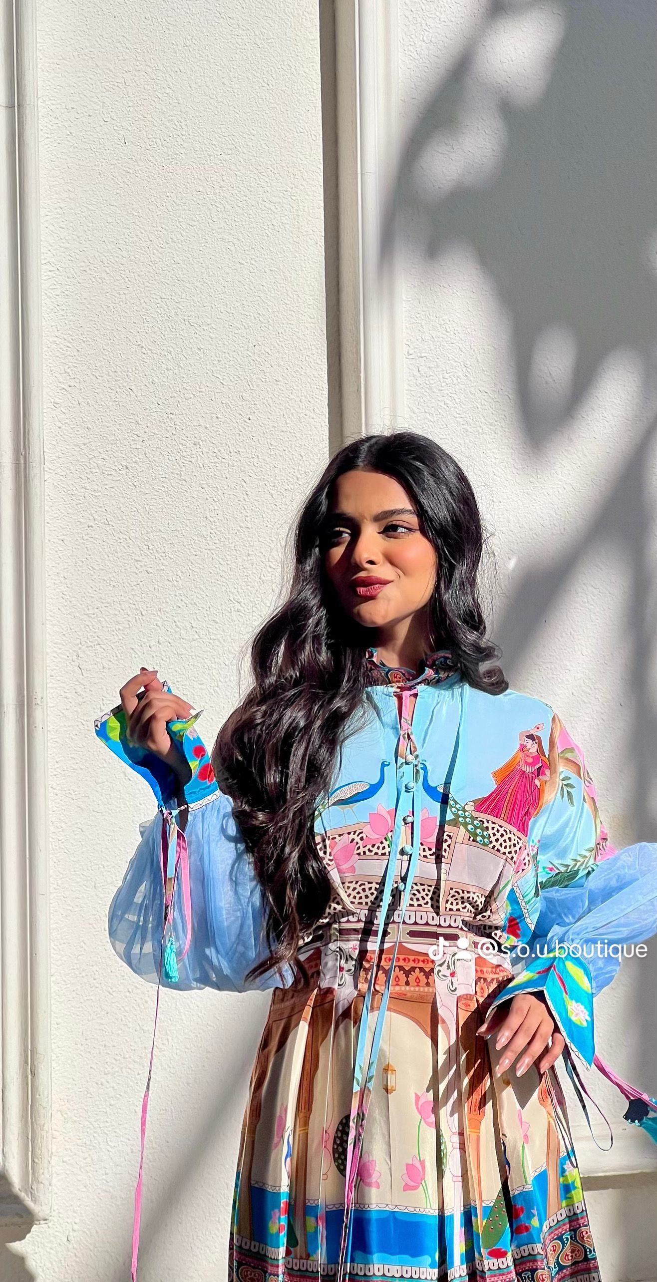 تألّقي بإطلالة مختلفة تمامًا مع فستان بطابع فني ملون يجمع بين الأناقة العصرية واللمسة الثقافية الفريدة؛ ألوانه الزاهية ونقوشه المستوحاة من الفن الكلاسيكي تمنحك حضورًا لافتًا في كل مناسبة، بتفاصيل دقيقة تعكس روح الإبداع وتبرز ذوقك الراقي.