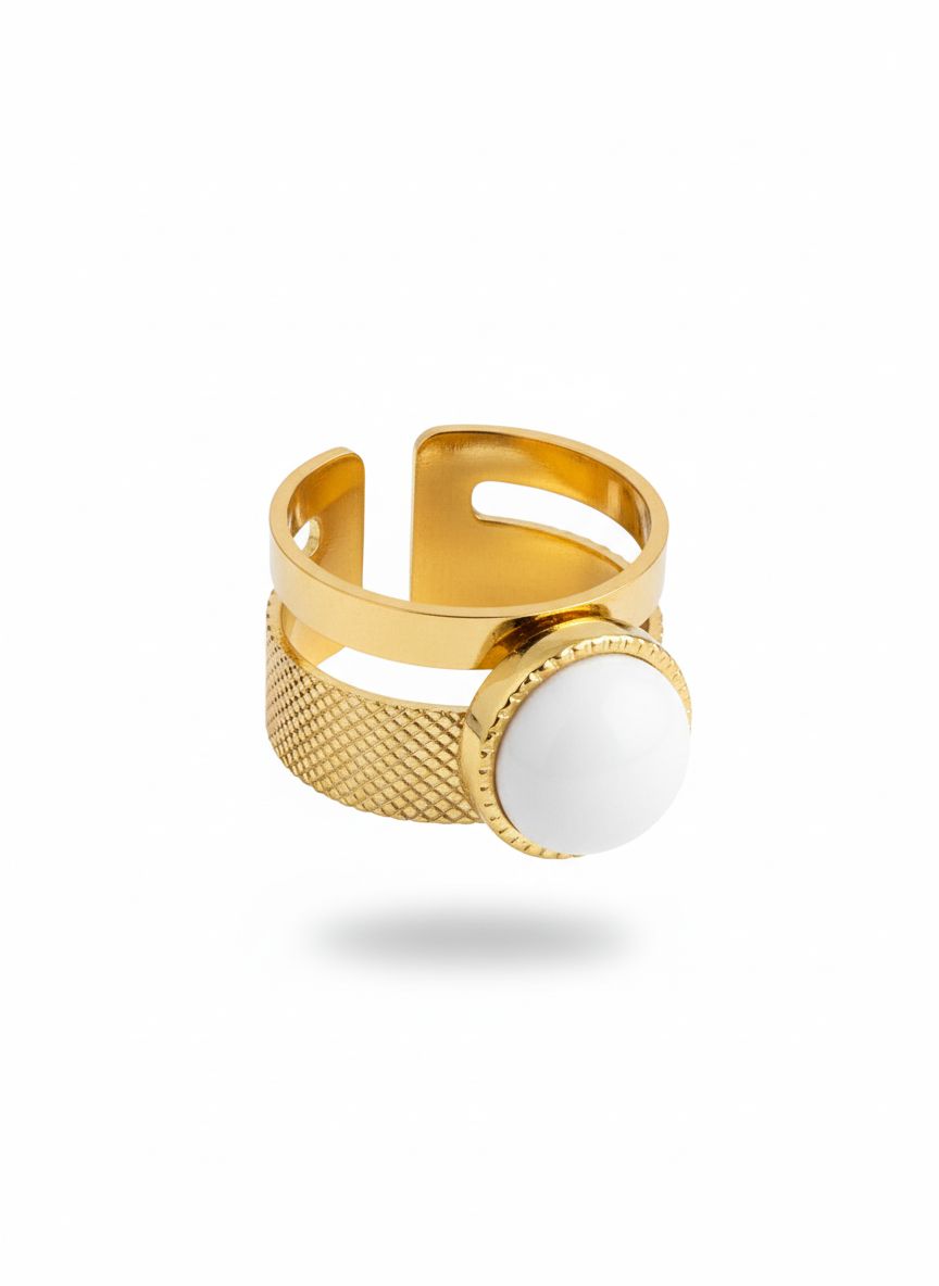 - تصميم أنيق بلمعة ذهبية مع حجر أبيض لامع يرفع مستوى الإطلالة فورًا.