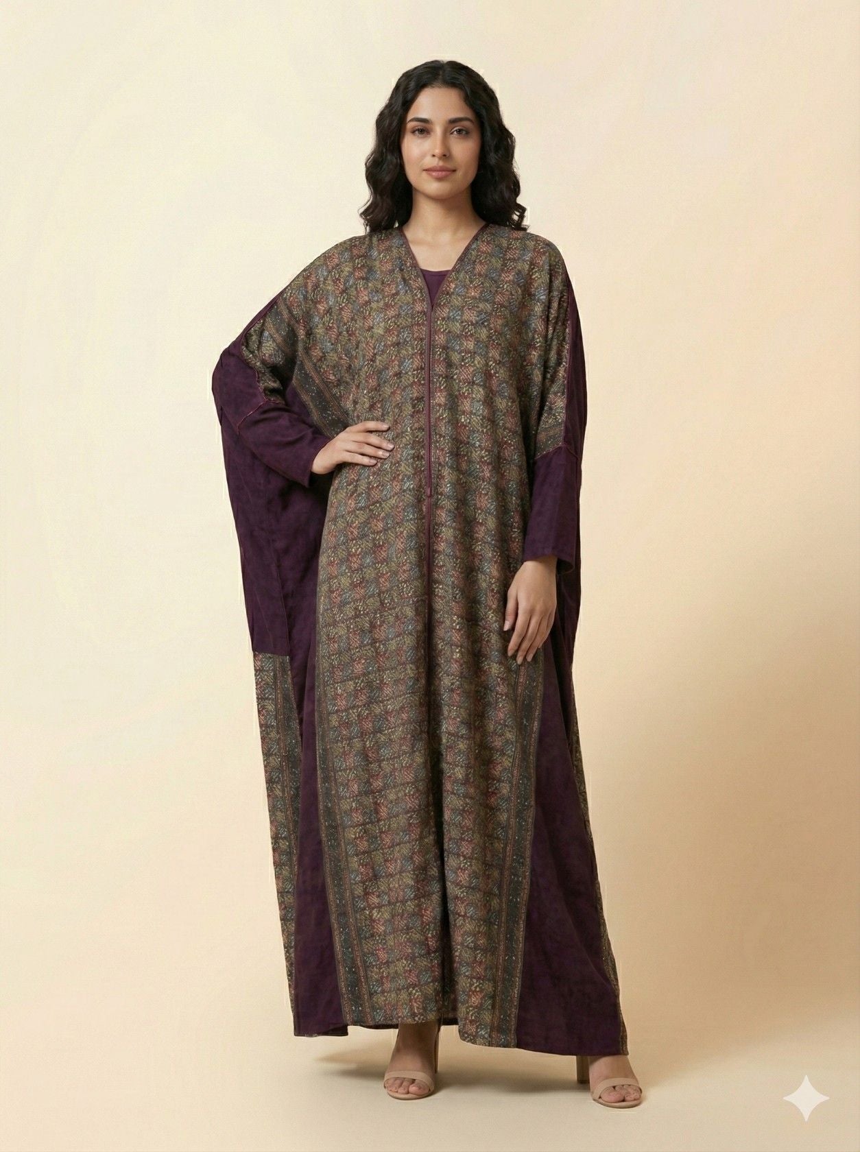 عباية بتصميم محتشم وأنيق تجمع بين لون عنابي راقٍ وقماش منقوش يمنحك حضورًا لافتًا بدون مبالغة، مناسبة للإطلالات اليومية والمناسبات الخفيفة بكل ثقة وذوق.
